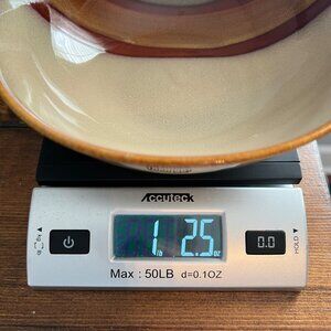 Earth-tone ceramic bowl with a striped design, suitable for serving or décor. Durable and easy to maintain, adds a rustic charm to spaces.