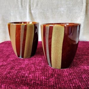 Sango Avanti Brown and Blue Stripes 4722 coffee tea ceramic mugs SET OF 2