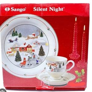 Sango Christmas Silent Night Dinnerware 3 Piece Place Setting New (set 3 of 3)