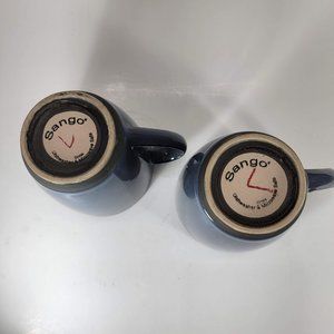 Sango Coffee Mugs Eggplant Blue White Cup Mugs 4" Tall Set of 2