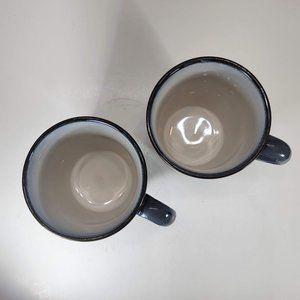 Sango Coffee Mugs Eggplant Blue White Cup Mug 4" Tall Set of 2 Pre Owned