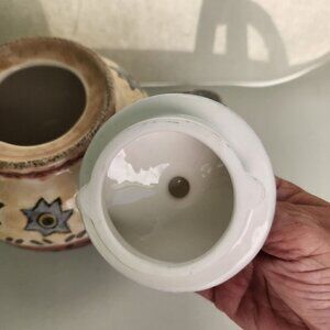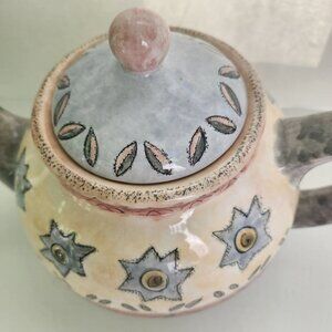 Sango Coffee Shoppe By Sue Lipkin Rare Tea Pot. 11"x7". Stunning Neutral Shades, Locking Lid. Good Pre-Owned Condition