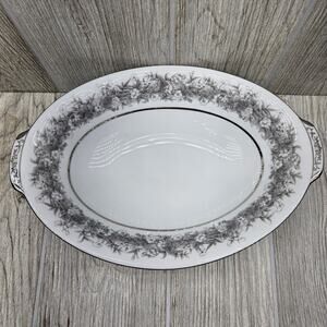 Sango Florentine 10" Oval Vegetable Serving Bowl Vintage Japan Platinum Trim