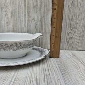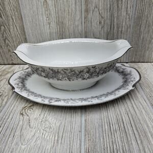 Sango Florentine Gravy Boat With Attached Underplate Vintage Japan Platinum Trim