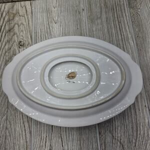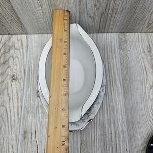 Elevate your dining experience with the Sango Florentine Gravy Boat, complete with an attached underplate. Crafted with care in Japan, this vintage piece features an elegant platinum trim that adds a touch of sophistication to any table setting.