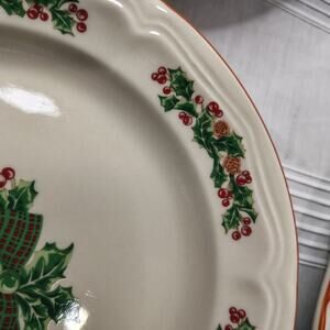 Sango Jingle Bells 7 1/2" Salad Dessert Plates Vintage 1989 Stoneware Christmas