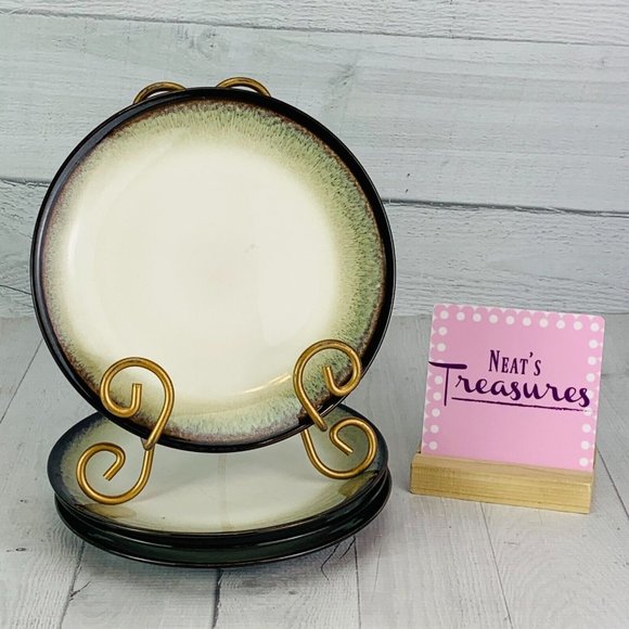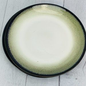 Sango NOVA BLACK 4932 Grayish White Center Stoneware Salad Dessert Plate Set 4
