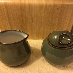 Sango Nova Cream and Sugar Set Sage Green 3 Piece