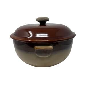 This beautiful stoneware covered casserole from Sango’s discontinued Splash Brown 4951 line is a rare and collectible kitchen piece. Featuring a rich brown glaze with natural tonal variation, this 3-quart ovenproof Dutch oven is perfect for baking, roasting, serving, and everyday cooking. The durable stoneware body retains heat well and adds a warm, earthy look to any kitchen.