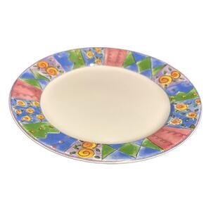 Add some color to your dining experience with these Sango Sue Zipkin Dinner Plate. The Biscotti pattern features a vibrant mix of colors that will surely delight your guests. The plates are made of durable ceramic material and are oven, microwave, and dishwasher safe. Each plate measures 10 5/8" in diameter and has a round shape. The border color is multi-color and the plates are perfect for all occasions. This plate is a great addition to your dining collection and will surely impress your guests.