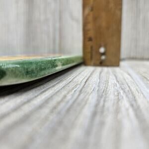 This festive cheese tray from Sango features a charming snowman design by Sue Zipkin. The tray measures 7 7/8 inches and is made of high-quality ceramic material. Its colorful and intricate pattern make it a perfect addition to any holiday gathering or dinner party.