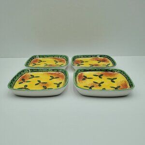 Sango The Sweet Shoppe Christmas Holly Appetizer Plates Snack Plates Tasting Plates - Set of 4. Excellent pre-owned condition. Small square plates measuring 5" featuring holly leaves and berries.