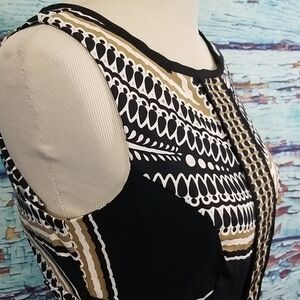 NWT nice patterned dress. Form fitting. Not much stretch. Zipper in back.