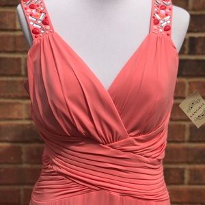 Sangria peach formal floor length dress. Size 12 Color:Passion style #AWIFS14 Shell 95% polyester 5% Spandex Lining: 100% polyester