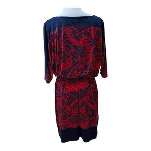 Sangria Red Navy 3/4 length Sleeve with Matching Tie Belt Office Dress Size 14W