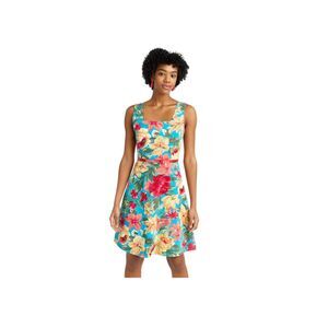 Sangria Size 10 floral sundress knee length . 98% cotton and 3% Spandex. Back zipper. Pink silk ribbon and bow at waist. Sleeveless A line dress. Top is lined. Pit to pit 18.5” and length 38”.