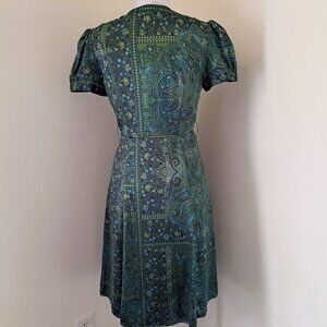 Sangria Women Paisley Dress Size 6 Green/Blue Short Sleeve