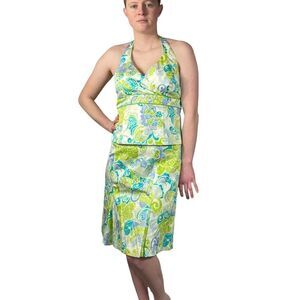 Sangria Blue and Green Two Piece Skirt and Top Floral Set