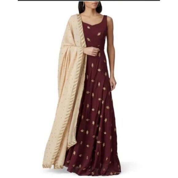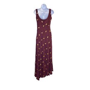 Sani Womens Maxi Dress Maroon Side Pockets Printed Details Size Small