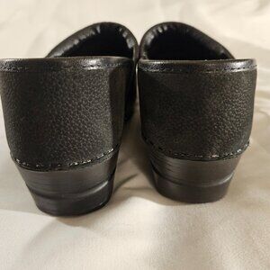 Classic black leather clogs. Fit more like an 8 than a 9 to me. Comfortable and stylish. Perfect for everyday wear.