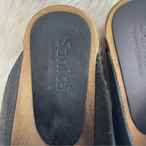Sanita Black Leather Slip On Wooden Clogs Comfort Shoes Size 35 / 5