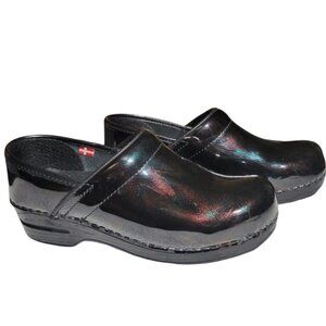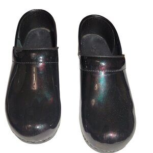 Sanita Black Satin Leather Original Danish Professional / Nurse Clogs size 37/6