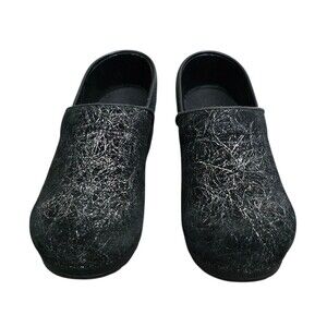Sanita Clog Shoes Womens Size EU 38 US Size 7 - 7.5 Black Silver Suede