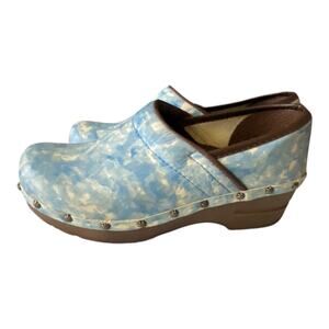 Description: Sanita Clogs Women's Studded Sky Blue White Color Design, Leather Slip-Ons Size EU 35 US 4 Nurse Shoes. Soles are in good condition. No rips, peeling, or tears. Lots of life left!