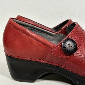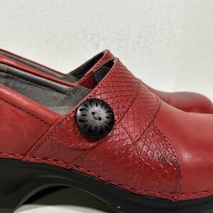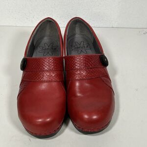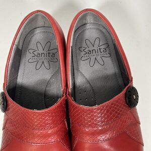 Sanita Danish Design Red Shoes Size 36 6.5 US Leather Clogs Comfort Button Artsy