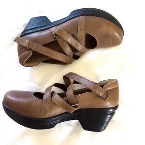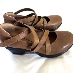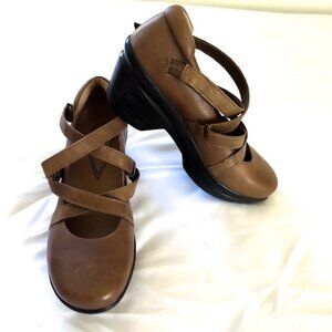 Sanita Neve Mary Jane Clogs Tan Leather Polyurethane 38 EU nursing 7.5-8 heel