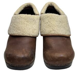 Sanita Original Danish Sherpa and Brown Leather Clogs 38