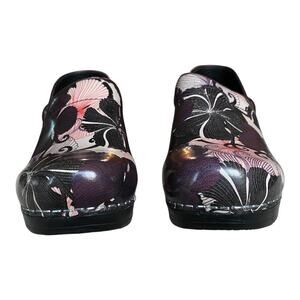 Sanita Patent Leather Clogs EU 35, US 4 Floral Purple White Black Slip On