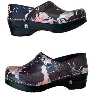 Sanita Patent Leather Clogs EU 35, US 4 Floral Purple White Black Slip On