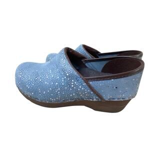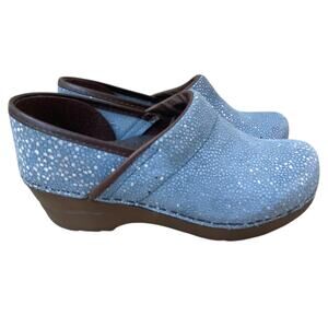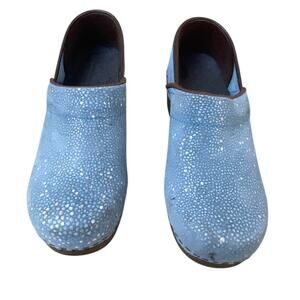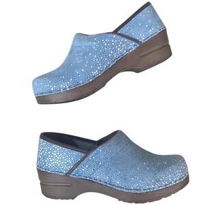 Sanita Professional Blue Speckled Leather Clogs Women's 4/ EU 35 Work Nursing Comfort Shoes Condition: Pre-owned, good condition. There are some creases and scuffs from normal use. See photos for exact condition. The soles are in good condition.