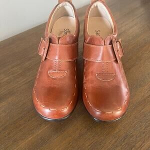 Sanita Professional Nicky Suze Brown Leather Clogs with Buckle- Size EU 38 US 7