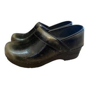 Description: Sanita Professional Olive Green Speckled Patent Clogs EU 35 US 4 Work Nurse. Soles are in good condition. Lots of life left. The patent leather upper is free of rips or tears, but please note there are a few minor scuffs and light surface marks typical of gently worn clogs.
