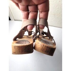 Sanita Taupe Ten Women’s Leather Wooden Sole Sandals Buckle Straps Size 38 US 7