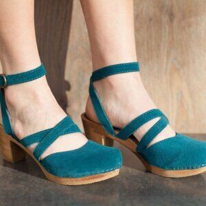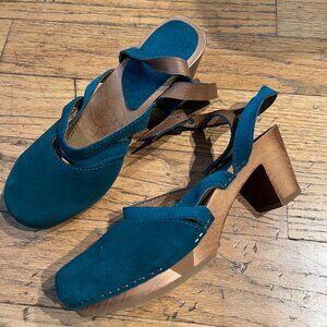 Sanita Tinja in Petrole Suede Clogs EUR38