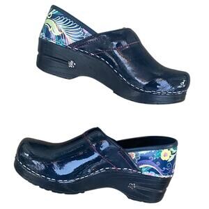Sanita Womens Patent Leather Clogs EU 35 US 4 Navy Blue Butterfly Work Shoes