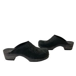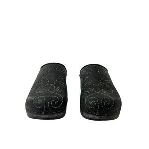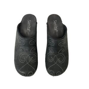 Sanita Womens Size 37 US 7 Black Embroidered Slip On Clogs