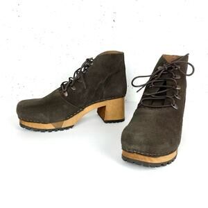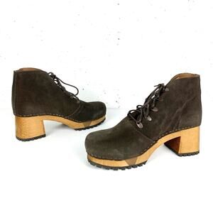 Features: wooden footbed clog boots, medium high shaft with laces, flex lime tree wooden soles with rubber grips, Danish, Denmark, dark academia, witchy, witchcore, preppy, doll, harajuku, coastal, retro, old school, prairiecore, prairie, boho, bohemian, cottage, cottagecore, hippy, hippie, flower child, rustic, indie, hipster, folk, folklore, rural, bohostyle, bohofashion, bohochic, earthy, groovy, funky, wacky, unique, avant garde, quirky
