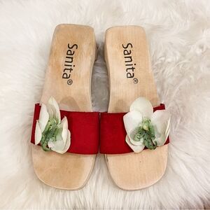 🍋 Sanita • Women’s Wood Sandals w/Leather Strap & Orchid Detail Size 36EU/5US