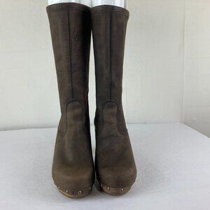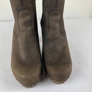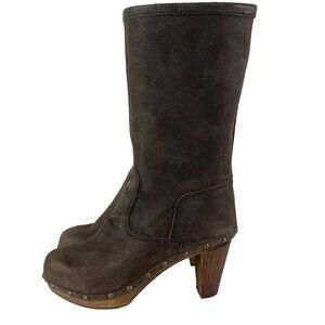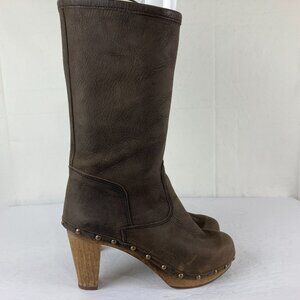 Sanita Womens sz 8 eu 39 Brown Leather Block Heel Mid Calf Studded Boots