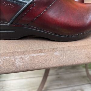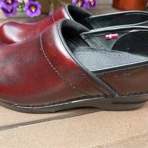 Experience the perfect blend of comfort and style with these Sanita deep red leather clogs. There is damage to one shoe that can be repaired by a shoe repair shop. Beautiful, barely used. No cracks or creases in the leather (besides noted and pictured damage on tip). Soles are clean. Ready to be yours, willing to negotiate on price due to damage. Size is 39 which fits 7.5-8 shoe size according to website. Regular price is $110-130.