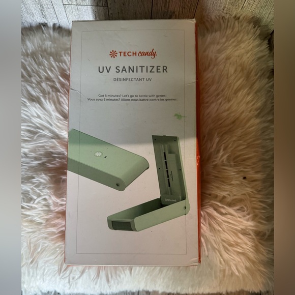 "Tech Candy UV Sanitizer," a portable device designed to disinfect small items using UV light.