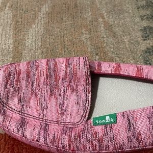 New cute pair of Sanük slip on shoes. They run a bit narrow in the toe box. Size 7 never worn.