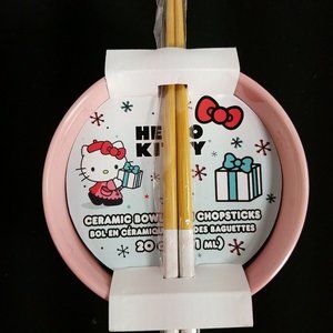 Sanrio 2023 Hello Kitty Christmas Pink Ramen Noodle Bowl Chopsticks - NEW
