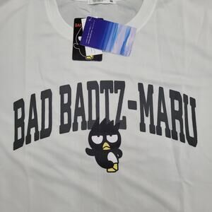 BAD BADTZ-MARU SANRIO T-SHIRT, WHITE GRAPHIC TEE, WOMENS JAPANESE FASHION, ARCH SPELLOUT TEE, BREATHABLE POLYESTER SHIRT, CUTE ANIME STREETWEAR, SANRIO COLLECTOR ITEM, OFFICIAL BAD BADTZ-MARU MERCH, KAWAII STYLE CLOTHING, TRENDY CASUAL WEAR
