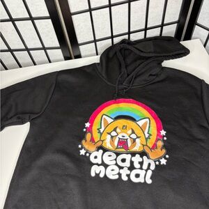 Black hoodie featuring a vibrant graphic. Includes rainbow colors and bold text. Comfortable and stylish.