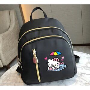 * Trendy Design: Sleek black nylon with gold-tone zippers and cute Hello Kitty character print.